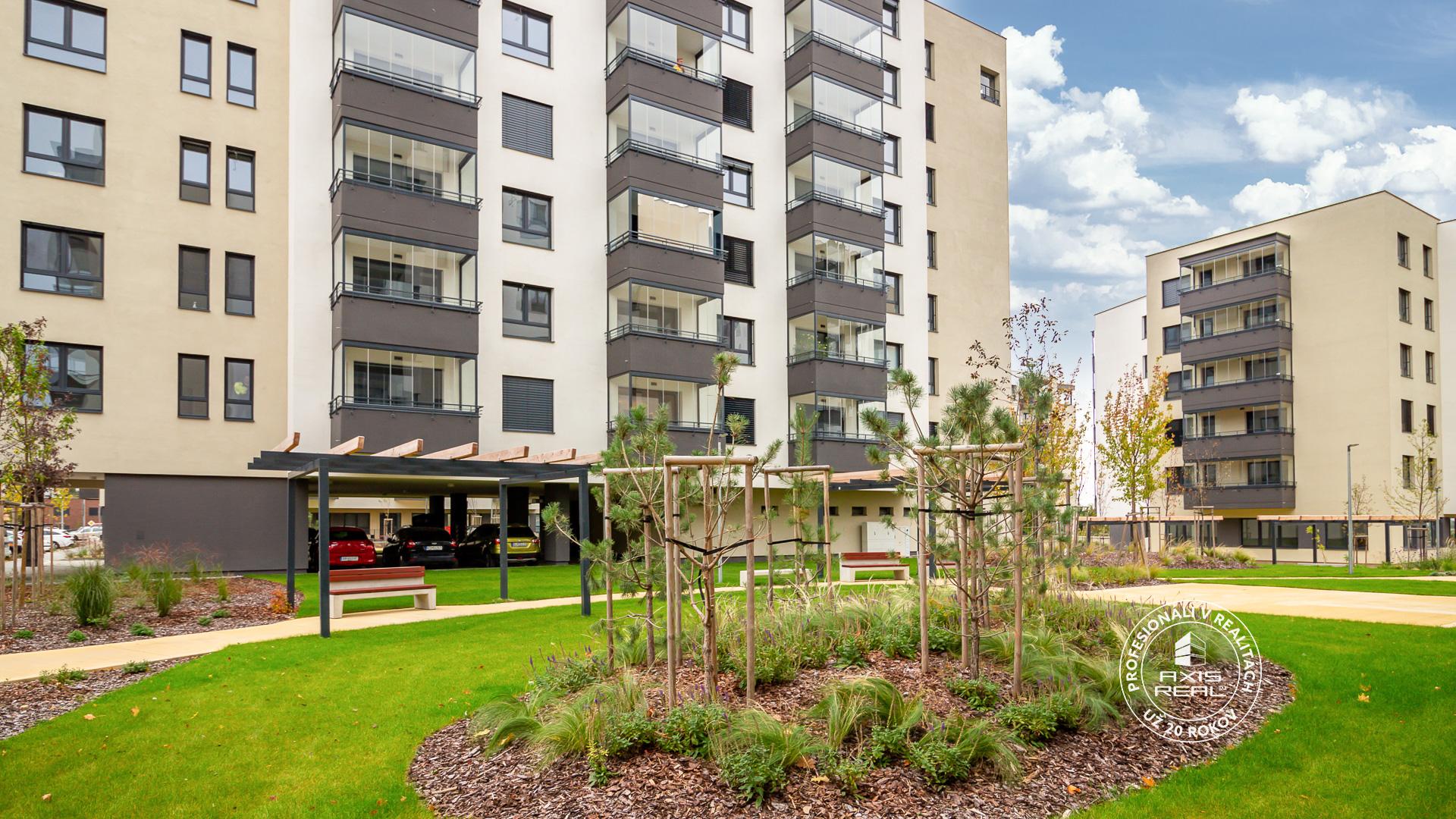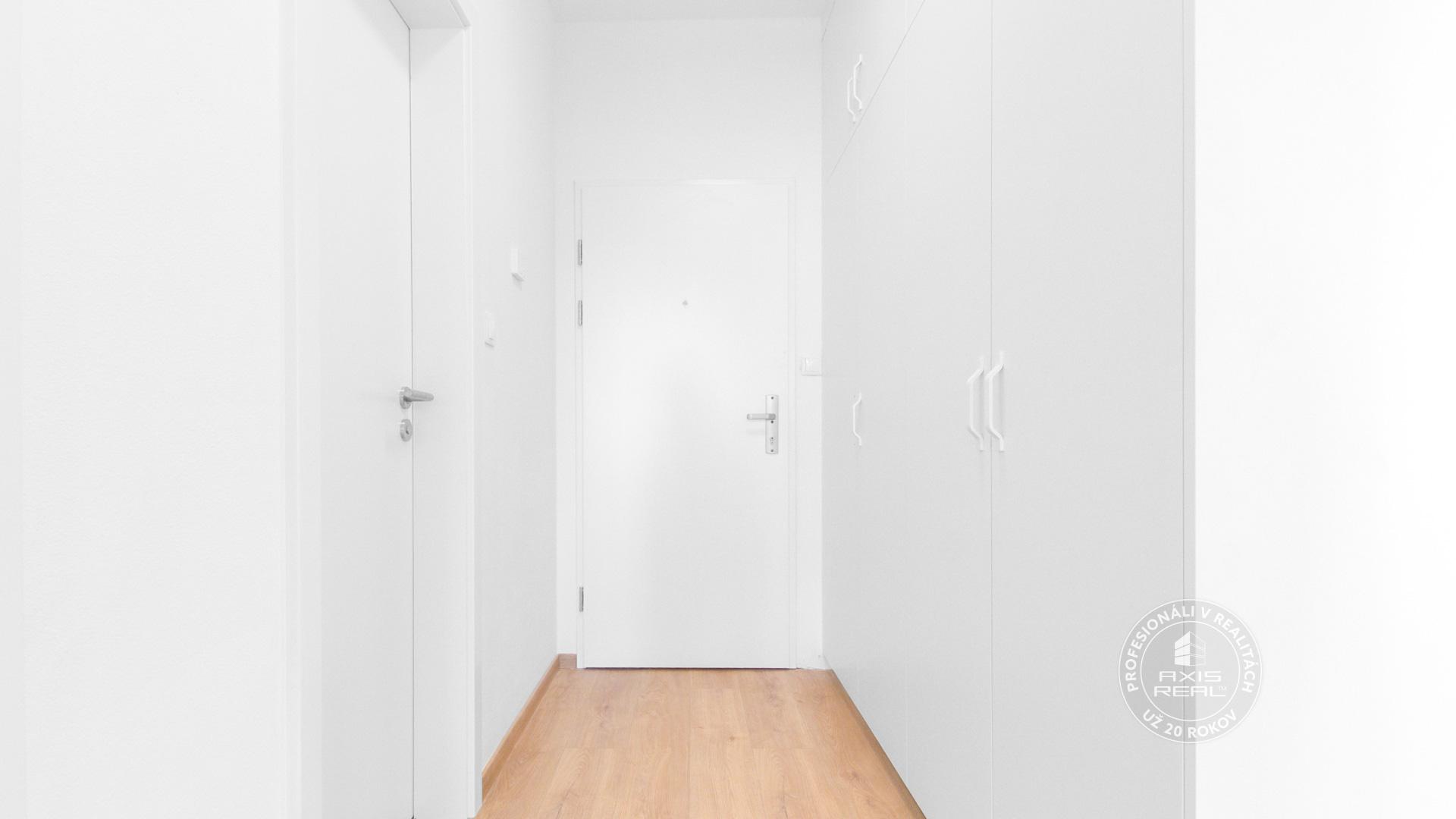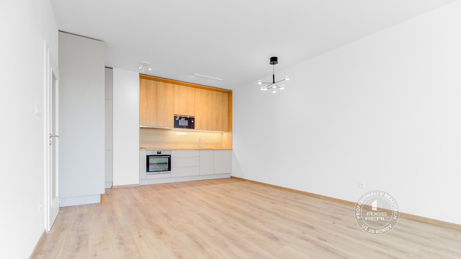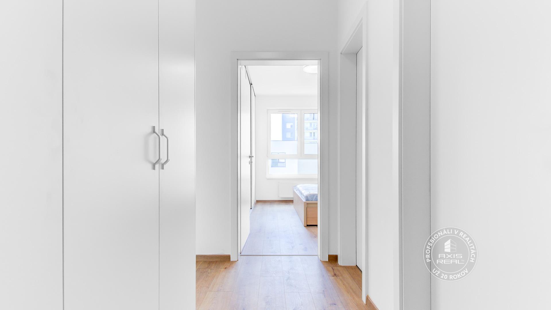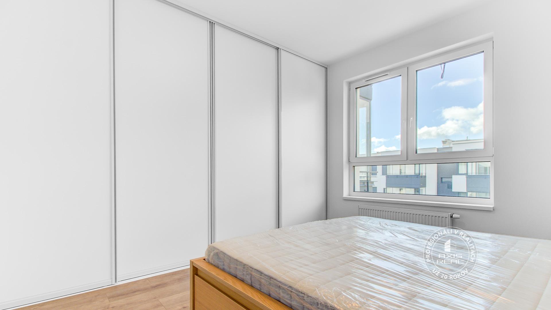The real estate agency AXIS REAL exclusively offers for rent a SUNNY, PARTIALLY FURNISHED, so far UNOCCUPIED 2-room apartment with a BALCONY in the NEW BUILDING RÍNOK RAČA on Františka Kubu Street in Bratislava III – Rača. The apartment has a total area of 61.34 m² (apartment 54.14 m², balcony 5.29 m², cellar 1.91 m²) and is located on the 7th floor with an elevator. The practical layout includes an entrance hall, a living room connected with the kitchen, a separate bedroom, a bathroom, a separate toilet and a glazed balcony. A BRICK CELLAR and a GARAGE PARKING SPACE in the underground garage are available. A pet is not welcome.