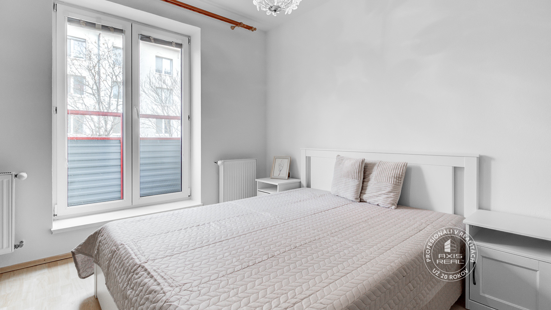 The AXIS REAL estate agency offers for rent exclusively a fully furnished chic 2-room apartment in Bratislava II, Ružinov - Nivy, located on Nitová Street. Available immediately. The rent is 650,-EUR plus a monthly utilities/energies deposit of 190,- EUR (for one person). The total area of the apartment, on the 2nd floor of the brick apartment building with an elevator, is approximately 48 m2. The apartment itself is 43 m2 plus a large basement storage cellar of approximately 5 m2. The apartment consists of an entrance space, a living room connected to the kitchen, and a separate bedroom. The bathroom comes with a bathtub and a toilet.