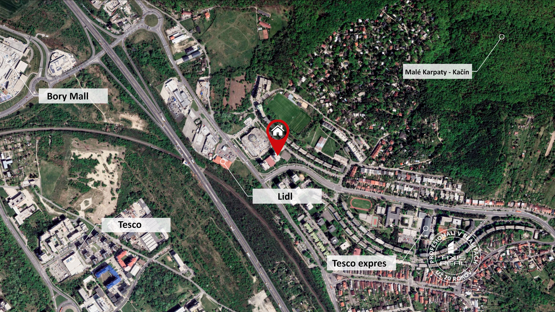 The residential building is located in a quiet part of Lamač, in proximity to nature. There are plenty of green areas, woods, and parks in the vicinity. As well as schools, kindergartens, shops (LIDL), and a health centre nearby. Nearby is the BORY MALL shopping centre with full amenities. There are public transport stops nearby, as well as a direct connection to the highway bypass.