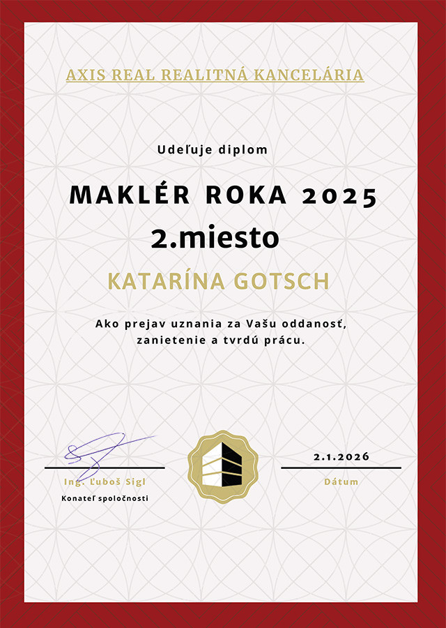 V realitnej kancelárii Axis real pôsobím od roku 2011 a viem presne ako má vyzerať profesionálne spracovaná ponuka nehnuteľnosti. Nič nenechávam na náhodu a keďže pracujem výhradne EXKLUZÍVNE, viem tak svojim klientom ponúknuť stopercentný servis v oblasti realitného biznisu. Pri svojej práci roky využívam najnovšie technológie a postupy, ktoré pomáhajú mne a mojim klientom dosahovať stanovené ciele. Nehnuteľnosti nechcem len inzerovať, chcem ich predať. Špecializujem sa na lokalitu Bratislava I. Staré Mesto, Bratislava IV. Dúbravka a Bratislava V. Petržalka ale aj Prešov.