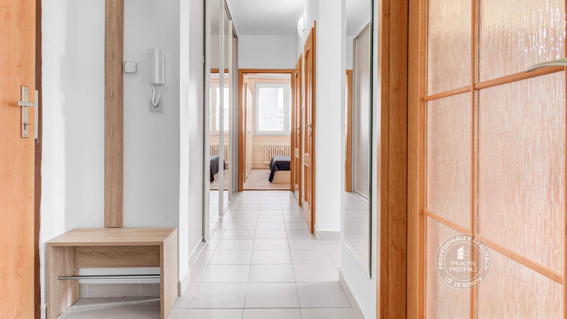 Realitná kancelária AXIS REAL ponúka na predaj pekný ZREKONŠTRUOVANÝ a ZARIADENÝ 3-izbový byt s LODŽIOU v obľúbenej zelenej lokalite Bratislava IV. Dúbravka, na ulici Saratovská. Tento byt s celkovou rozlohou 73,86 m2 (byt 68,90 m2, laťková pivnica 1,31 m2 a lodžia 3,65 m2) sa nachádza na 3. poschodí 13-poschodového zatepleného bytového domu s DVOMA MODERNÝMI VÝŤAHMI (nákladný a osobný výťah).