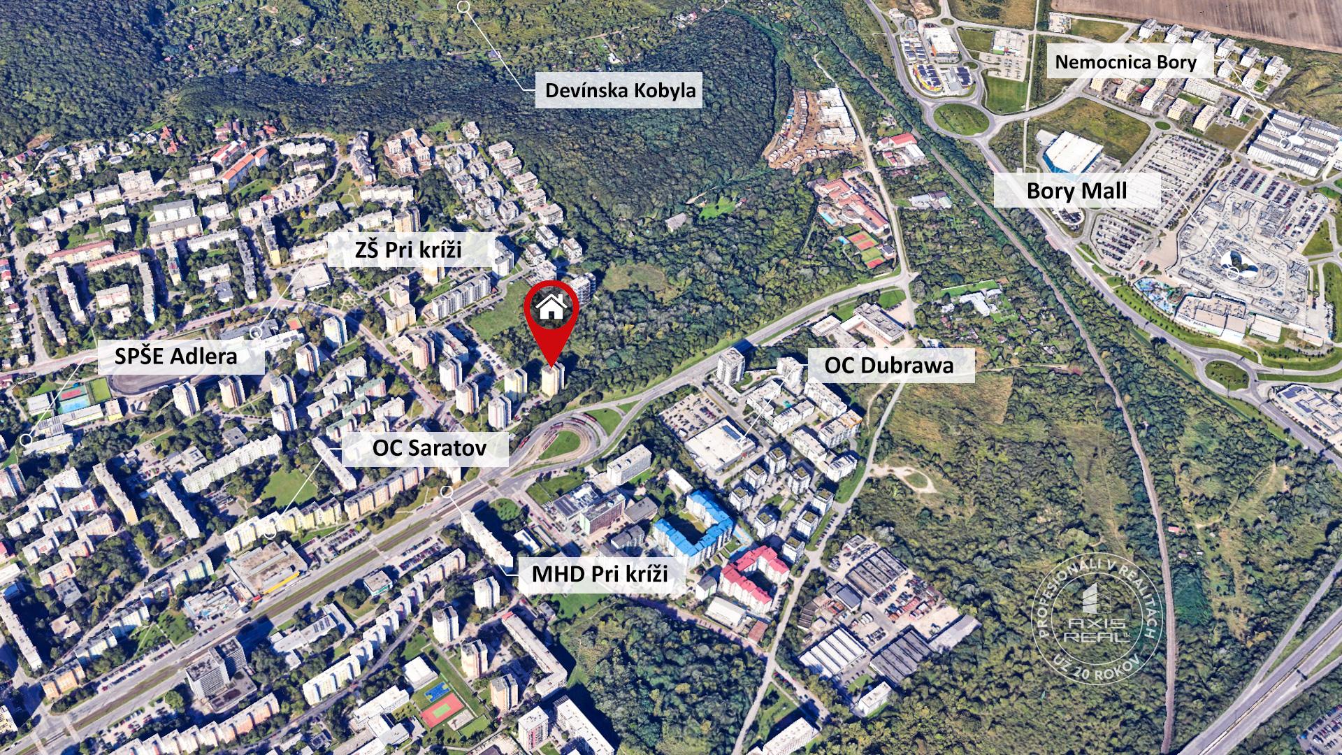 Blízko je veľký multifunkčný ŠPORTOVÝ AREÁL s parkom a BRITSKÁ ŠKOLA s vlastným školským ihriskom. Neďaleko sa nachádza aj nákupné centrum BORY MALL s kinom CINEMAX.